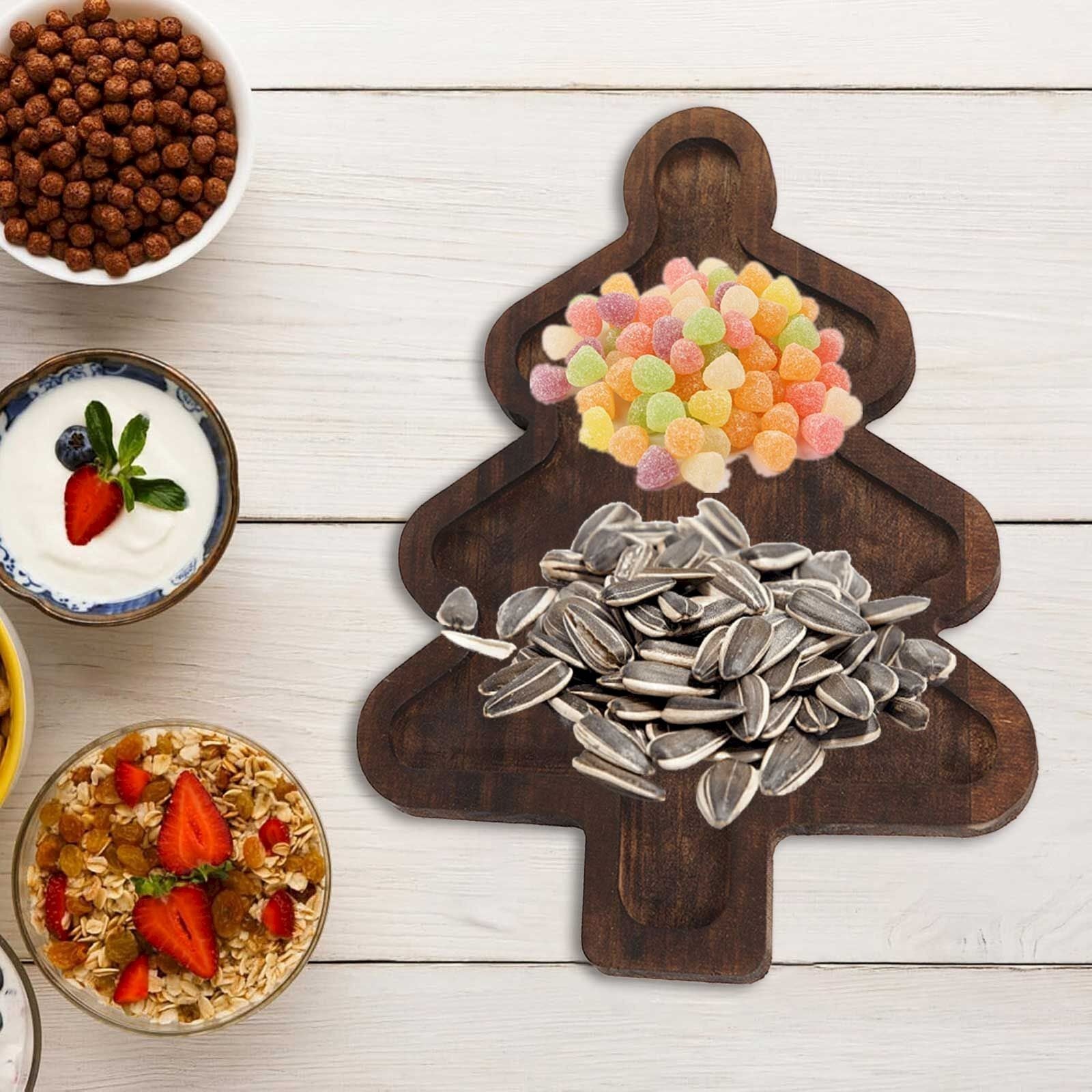Aceste farfurii din lemn cu tematică de Crăciun aduc un farmec festiv în bucătăria ta sau pe masa de sărbători. Disponibile în două forme atractive – Căciulă de Moș Crăciun și Pom de Crăciun – ele sunt perfecte pentru a servi gustări, prăjituri sau aperitive în spiritul sărbătorilor.