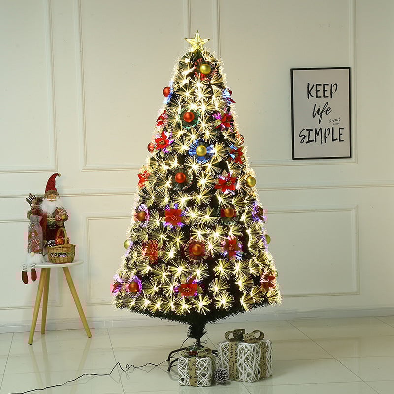 Brad de Craciun Artificial cu firbra optica, craciunite si ornamente, Multicolor