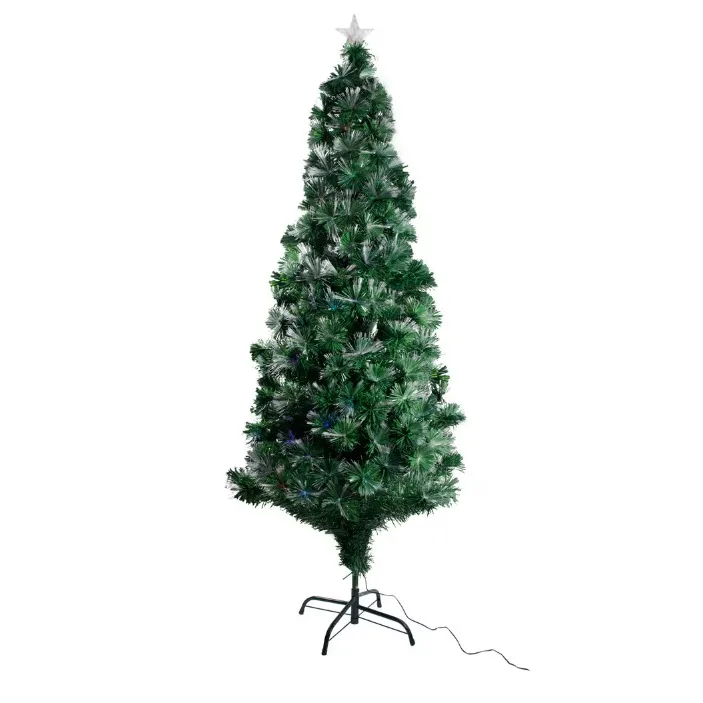 - Iluminare Multicoloră cu Fibre Optice : Fibrele optice încorporate oferă un spectacol de culori schimbătoare, distribuind lumina uniformă pe toată înălțimea bradului.