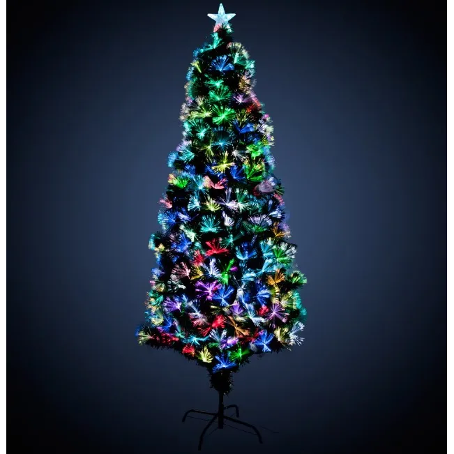 Bradul artificial, de 120 cm, aduce o atmosferă magică și festivă în orice încăpere datorită iluminării sale multicolore prin fiber optice. Designul său compact și elegant îl face ideal pentru decorarea casei
