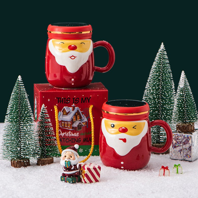 Cana Ceramica tematica Mos Craciun, 430 ml, capac tip oglinda, ambalaj cadou inclus, fete random, 8 x 11.5, rosu