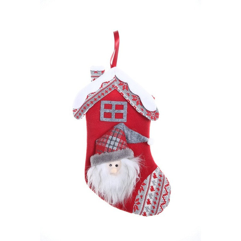 Ciorap Cadouri, model casa, culoare rosie, imprimeu Mos Craciun, marimea 15x30 cm