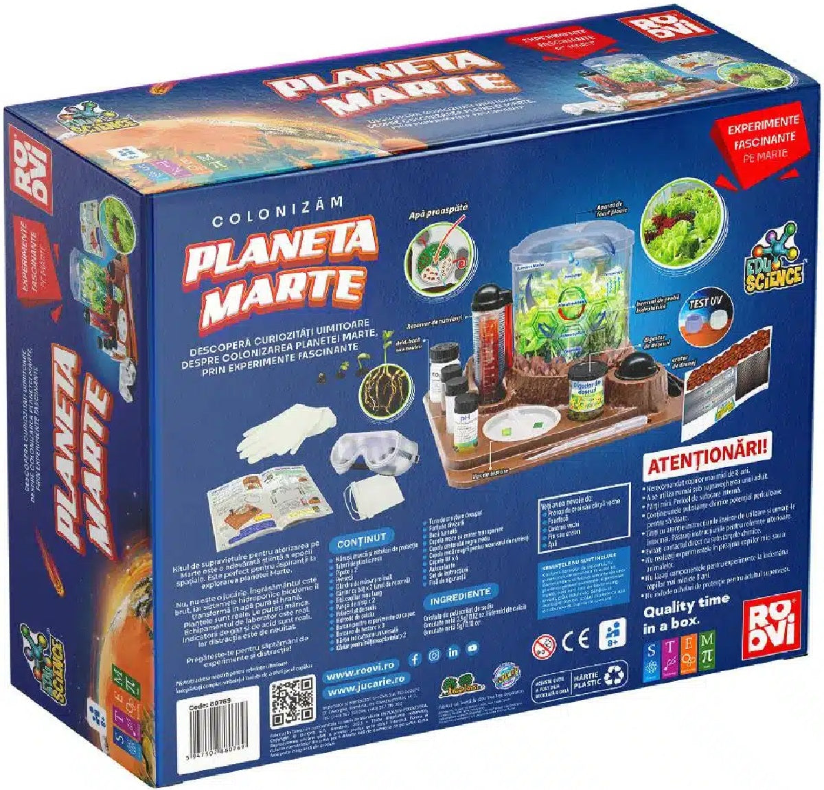 Daca vrei sa ii dezvolti copilului tau pasiunea pentru stiinta si tehnologie, precum si gandirea creativa, tocmai ai gasit solutia perfecta! Setul experimental Colonizam Planeta Marte le ofera micilor cercetatori pasionati de spatiul cosmic o experienta unica de explorare si creare a propriei colonii spatiale.
