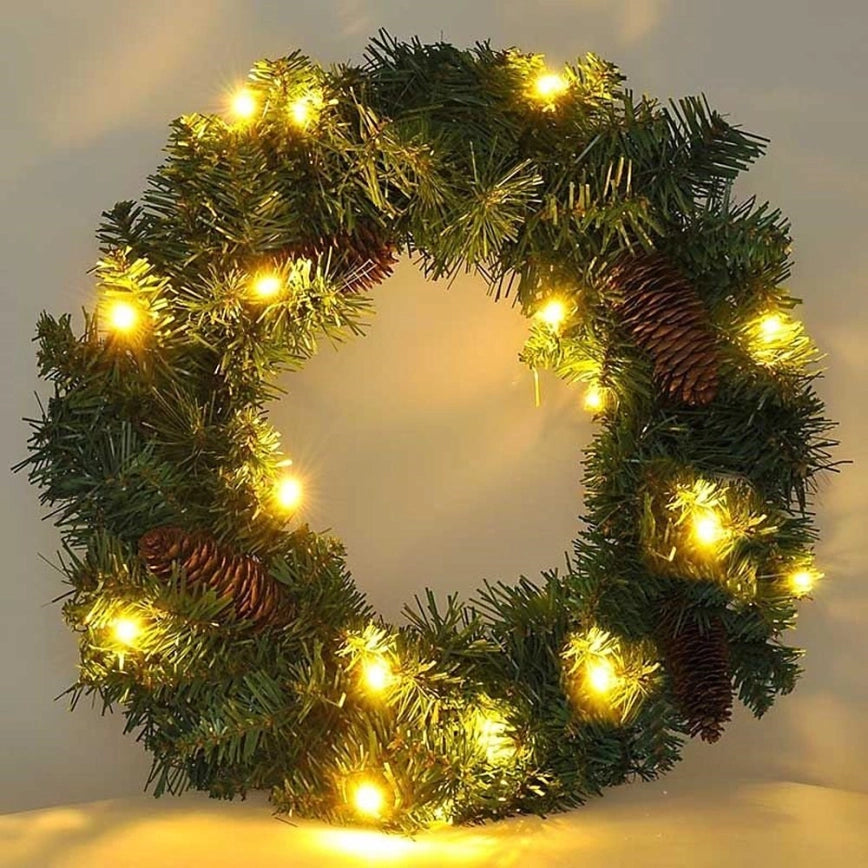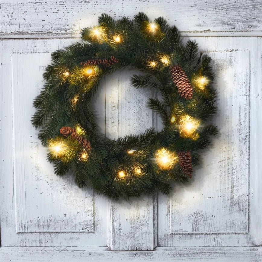 Coroană brad artificial cu LED de Crăciun de exterior si interior 15xLED/3xAA IP44