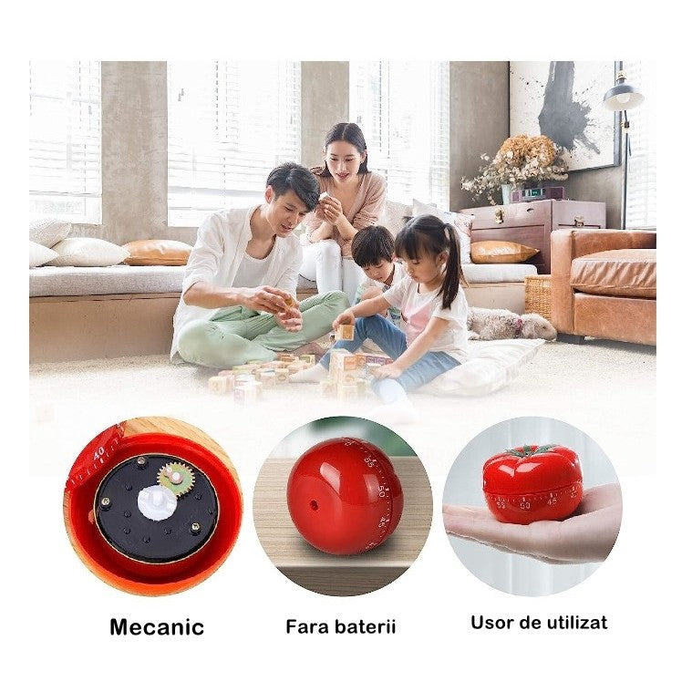 Cronometru mecanic de bucatarie, forma de rosie, 60 de minute, 6.3 x 4.5 cm, material ABS, rosu