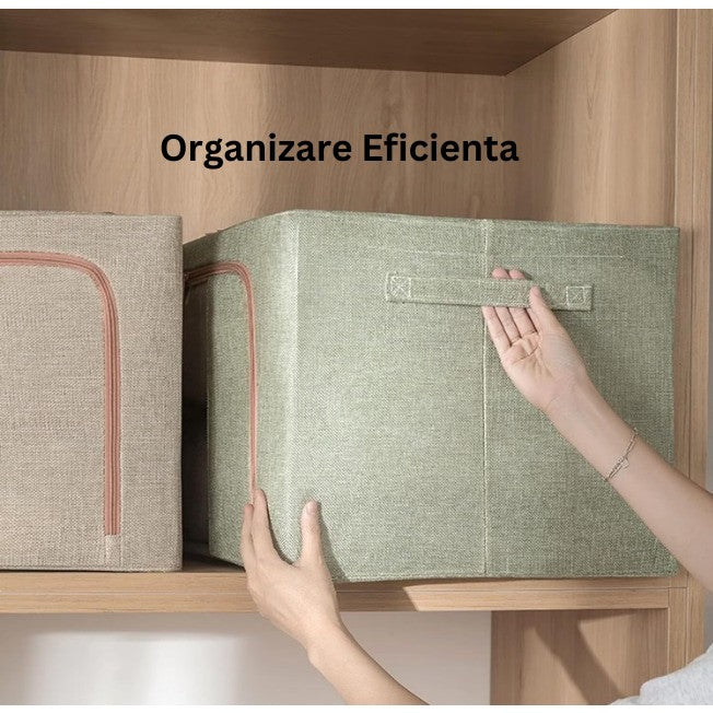 Cutie de Depozitare Pliabila, Cu fermoar Bidirectional, 66 L, Textil, 50x40x33 cm, Cadru Metalic, o Fereastra, Suport Baza Stabil din Plastic, Verde