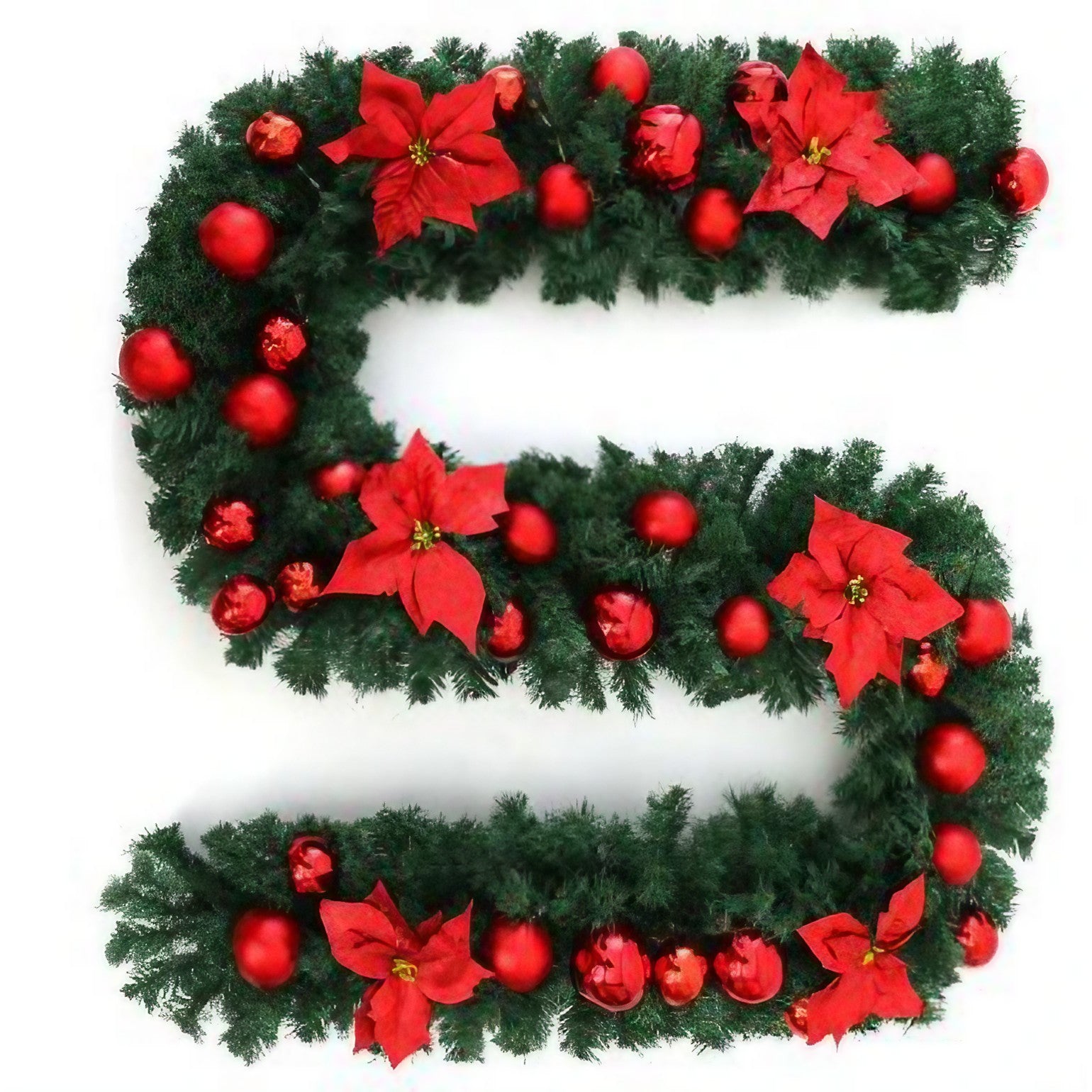 Ghirlanda decorativa Craciun cu Globuri si funde rosii, 2,70 m, Verde