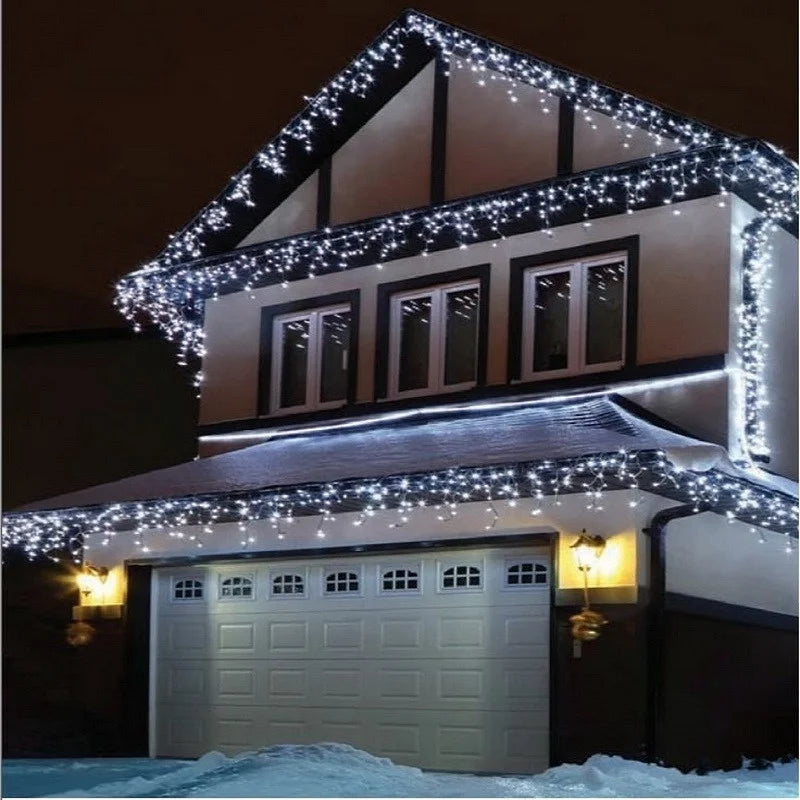 Instalatie de Craciun tip franjuri, model turturi, 20 M, 500 LED, interconectabila, Alb rece