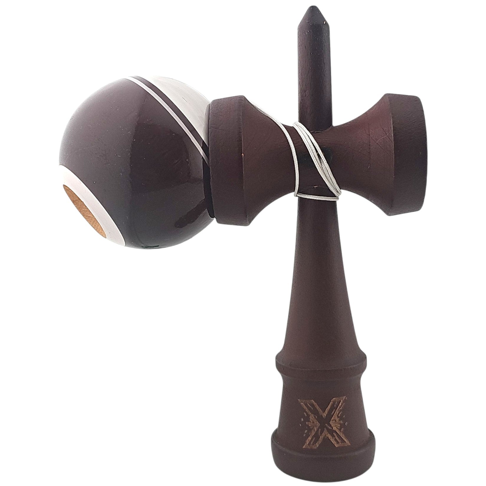 Kendama X Originala, Profesionala Limited, din Lemn, Super Sticky, 18 cm, Alb/Maro inchis