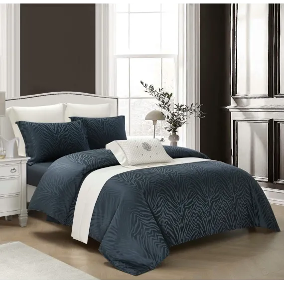 Lenjerie de pat 100% bumbac hipoalergenic Jacquard cu elastic – 4 piese
