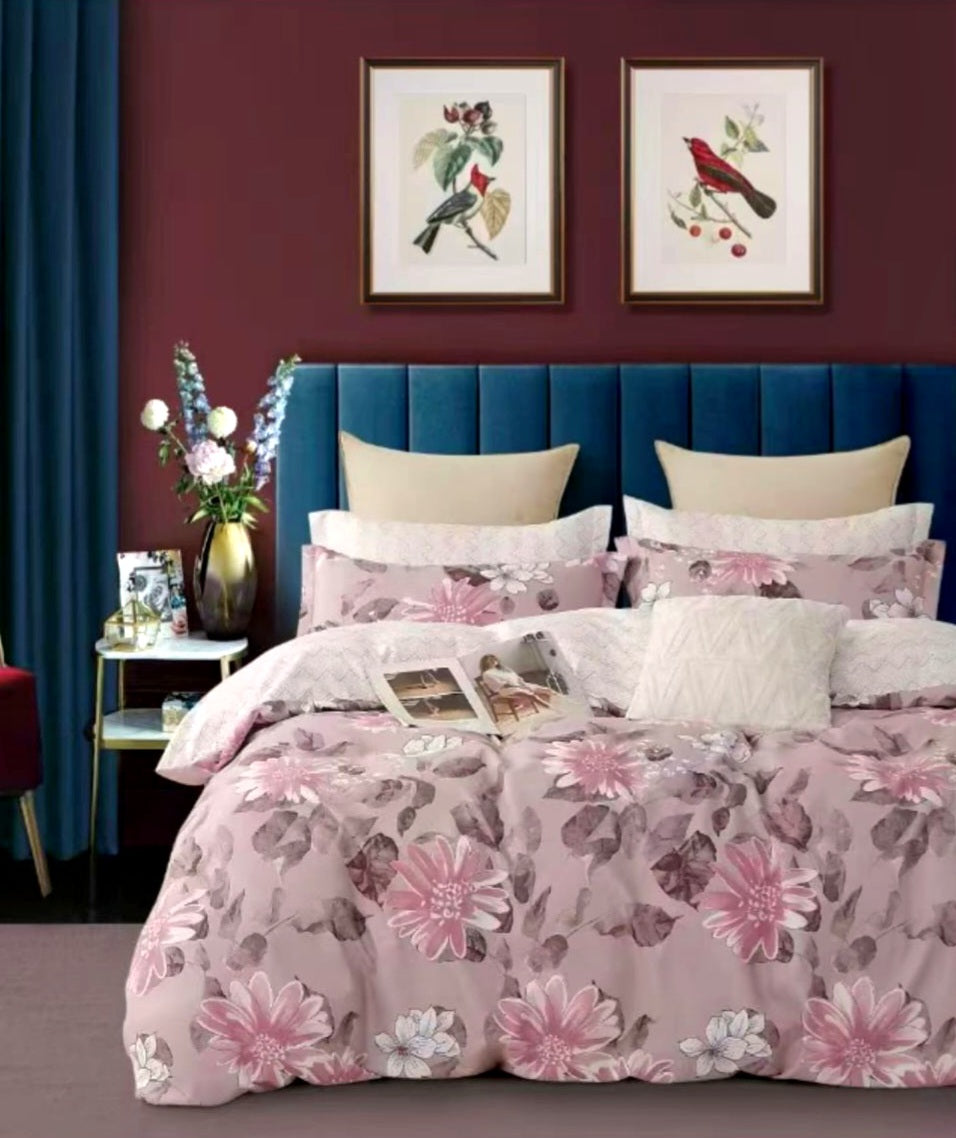 Lenjerie de pat dublu bumbac finet HIPOALERGENIC – 6 piese-230 x 250cm Alba Cu Mov