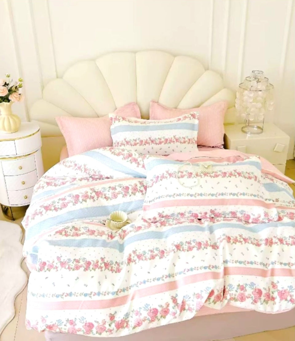 Lenjerie de pat dublu bumbac finet HIPOALERGENIC – 6 piese-230 x 250cm Alba fu roz si albastru
