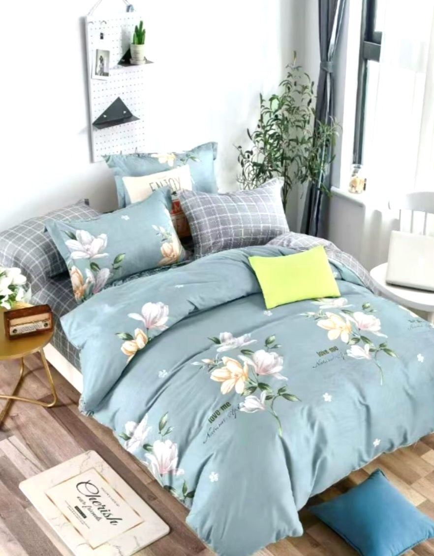 Lenjerie de pat dublu bumbac finet HIPOALERGENIC – 6 piese-230 x 250cm Albastra Cu Flori