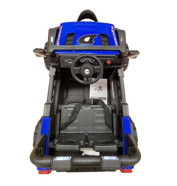 - Masinuta poate fi utilizata prin 2 moduri de control: de la distanta, in cazul in care parintele poate controla masinuta cu ajutorul telecomenzii cu 4 functii (inainte,inapoi,stanga,dreapta) sau manual, cand copilul conduce singur cu ajutorul pedalei de acceleratie si a volanului