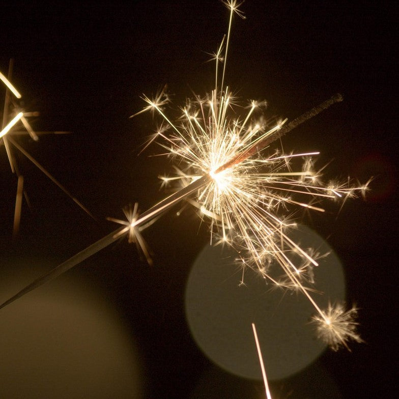 Artificii de mana cu sparkles se pot atasa oblic, iesite in afara paharelor de cocktail, salata fructe, etc., sau lipite pe sticlele de vin spumant, sau se pot pune in bradul de Craciun. Daca se aprind la capatul acoperit cu material pirotehnic, emit o steluta aurie de artificii care coboara spre baza, iar daca se aprind la mijloc, emit doua stelute care pleaca in sensuri opuse. Se utilizeaza doar de persoane avand varsta de peste 8 ani, dar sunt foarte apreciate si de copii. Nu produce zgomot