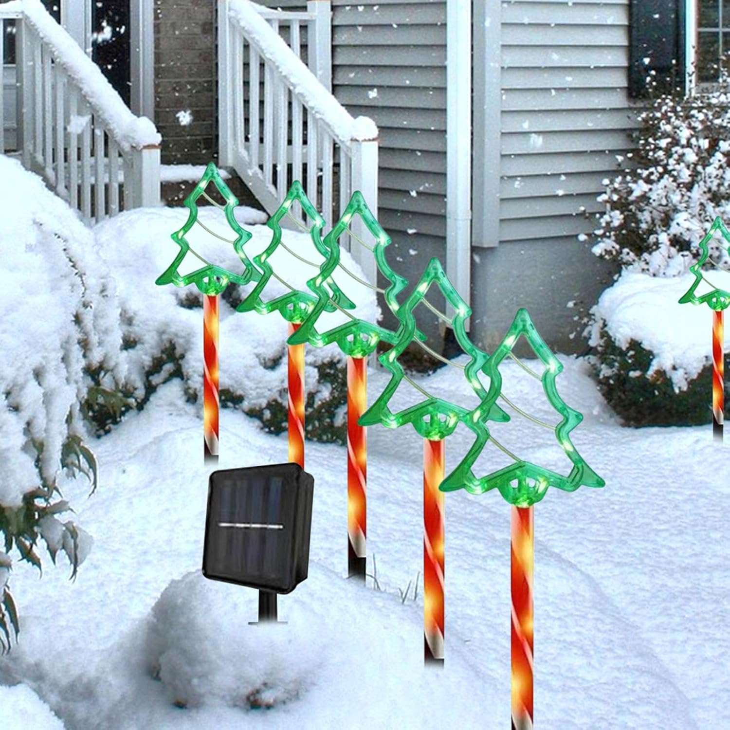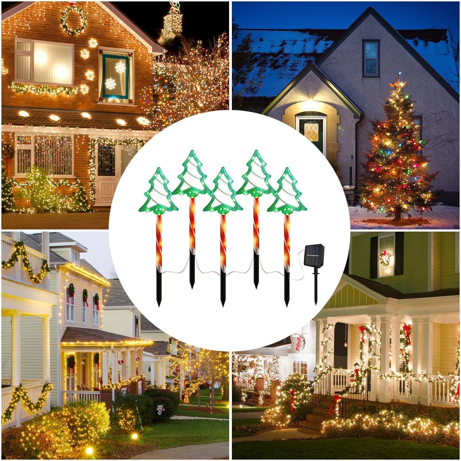 - 5 Stake-uri pentru Grădină: Setul conține 5 stake-uri solare, fiecare cu un pom de Crăciun iluminat, care pot fi inserate ușor în sol pentru a crea o atmosferă luminoasă pe drum sau pe aleile grădinii.