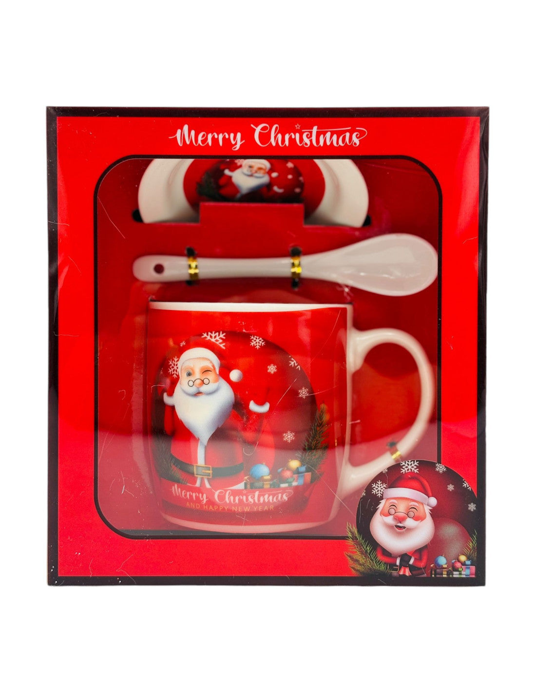 Set de Craciun, Cana cu lingurita si farfuriuta, 18×16×10cm